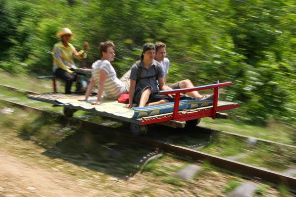 The Bamboo Train is world's one of the most classical rail journeys. In Khmer it's known as Norry (or nori). It is fitted with an engine at back side.